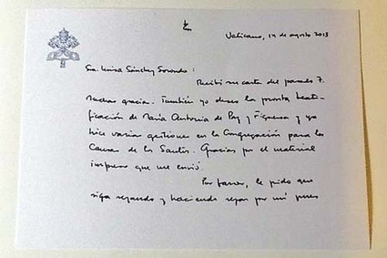 Santiago del Estero, Argentina 27 de Agosto de 2013 AICA El papa Francisco promueve en persona la causa de beatificación de María Antonia de Paz y Figueroa, para la cual ya hizo «gestiones» en la congregación para las Causas de los Santos.