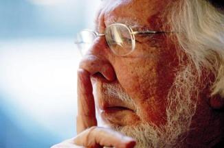 Sigue luciendo la característica boina negra que contrasta con sus blanquísimas cabellera y barba. A sus 89 años le falla el oído y se apoya en un bastón. Dicen que no podrá hablar