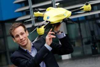 El equipo lleva un desfibrilador y, gracias a datos de ubicación, vuela al lugar desde donde se realizó una llamada de emergencia.