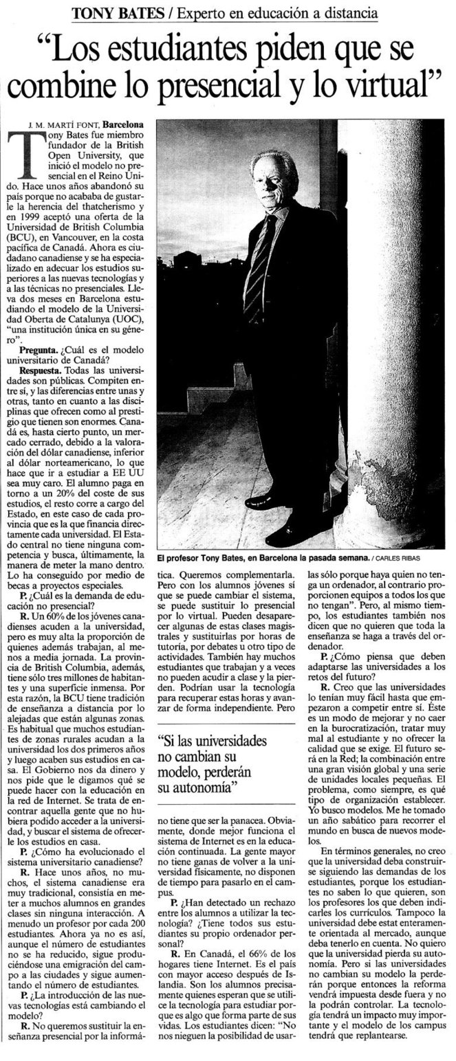 Tony Bates: «Los estudiantes piden que se combine lo presencial y lo virtual» Publicado el 30 enero, 2015 por Ángel Luis Vicentín Source: www.ua.es See on Scoop.it – Educación Virtual Comparte esto: Haz clic para compartir en X (Se abre en una ventana nueva) X Haz clic para compartir en Facebook (Se abre en una ventana nueva) Facebook Me gusta Cargando... Relacionado