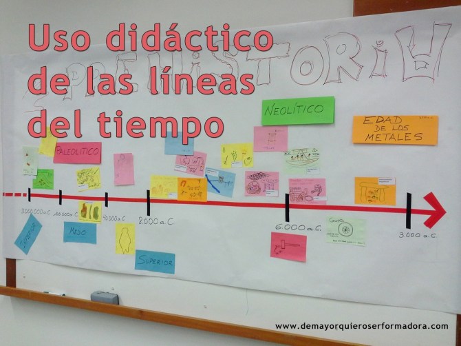 Crear una línea del tiempo es muy fácil por eso se puede empezar a introducir en los últimos cursos de educación Infantil y las herramientas para realizarlo son muy básicas, desde un simple mural como el que se muestra en la imagen que preside el post hasta herramientas web que nos facilitan su creación y a la vez permiten enriquecer la línea del tiempo con recursos multimedia.